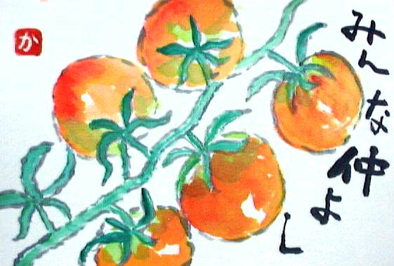 ミニトマト 絵てがみに だんだん 絵手紙 絵 思想